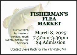 The Wellsville Fire Company will hold a Fisherman's Flea Market on March 8, 7:30am-3:30pm. The event will be held at the Fire Hall, 95 Community St, Wellsville. Admission is $4.00 per person. This event is sponsored by Central PA Bassmasters. There will be Vendors, Youth Events, Raffles, and Free Seminars. Contact Steve Koch 717-756-6747 for more information.