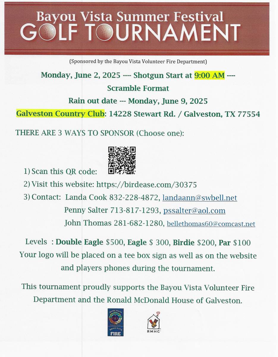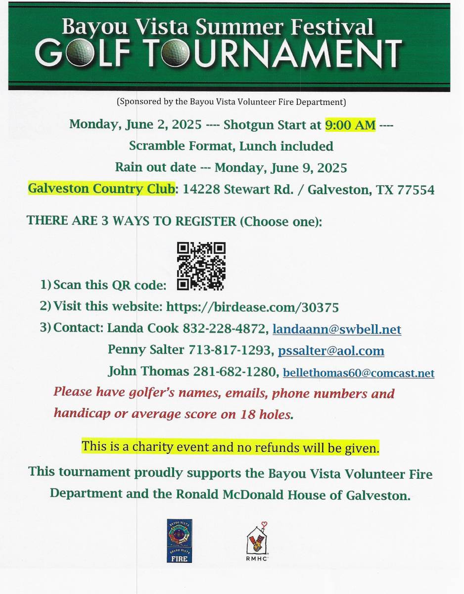 BAYOU VISTA SUMMER FESTIVAL GOLF TOURNAMENT 2025