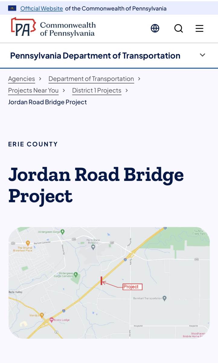 The Pennsylvania Department of Transportation will be replacing the Jordan Road bridge over Interstate 90 in Harborcreek Township.