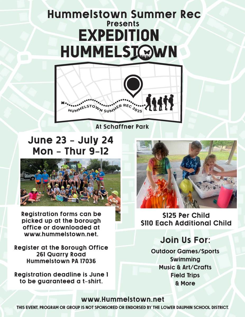 2025 Hummelstown Borough Summer Recreation Registration is now open!