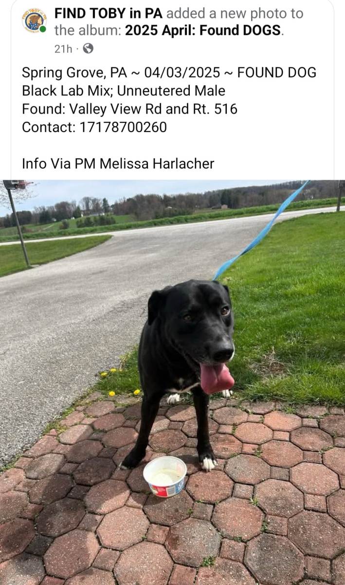 There was a male black lab mix found in the vicinity of Route 516 and Valley View Road. Please see attached photo.