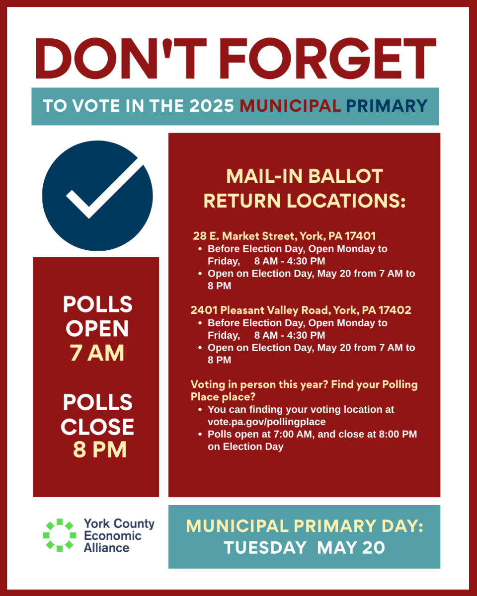 York County will elect a district attorney and an new County Corner. This year, the County Recorder of Deeds and the County Controller are also up for re-election. Municipalities across York County will elect the decision maker who directly impact their daily lives, by providing direct services like police coverage, trash pick-up, and community parks and recreation programming. These officials shape our communities more broadly via the zoning and land-use policies.