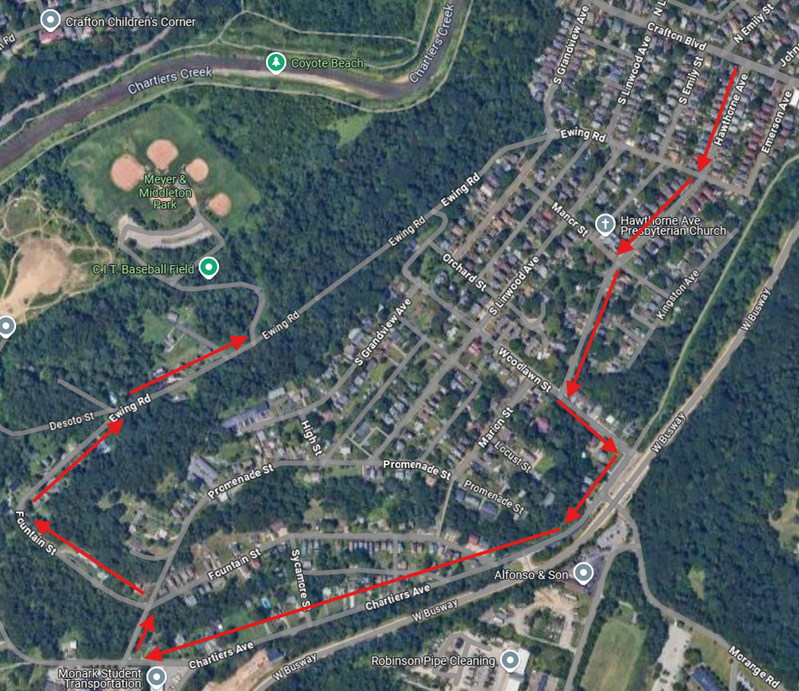 2. Make a left onto Woodlawn and then turn right onto Chartiers Avenue.