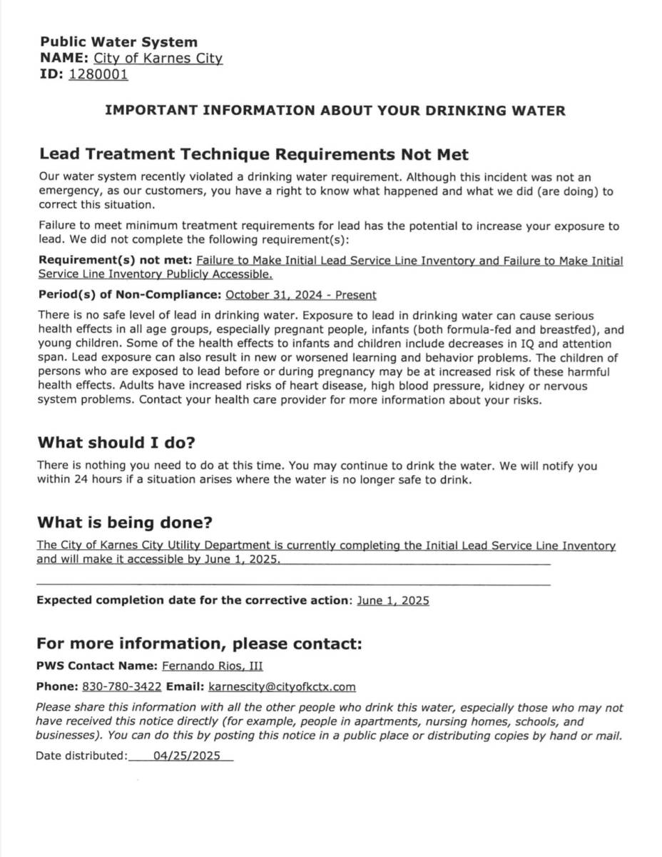 This notification was posted by Karnes City. Karnes City is solely responsible for this notification and unless specifically indicated, no other community or individual utilizing Savvy Citizen is sponsoring, responsible for, or endorsing this notification.
