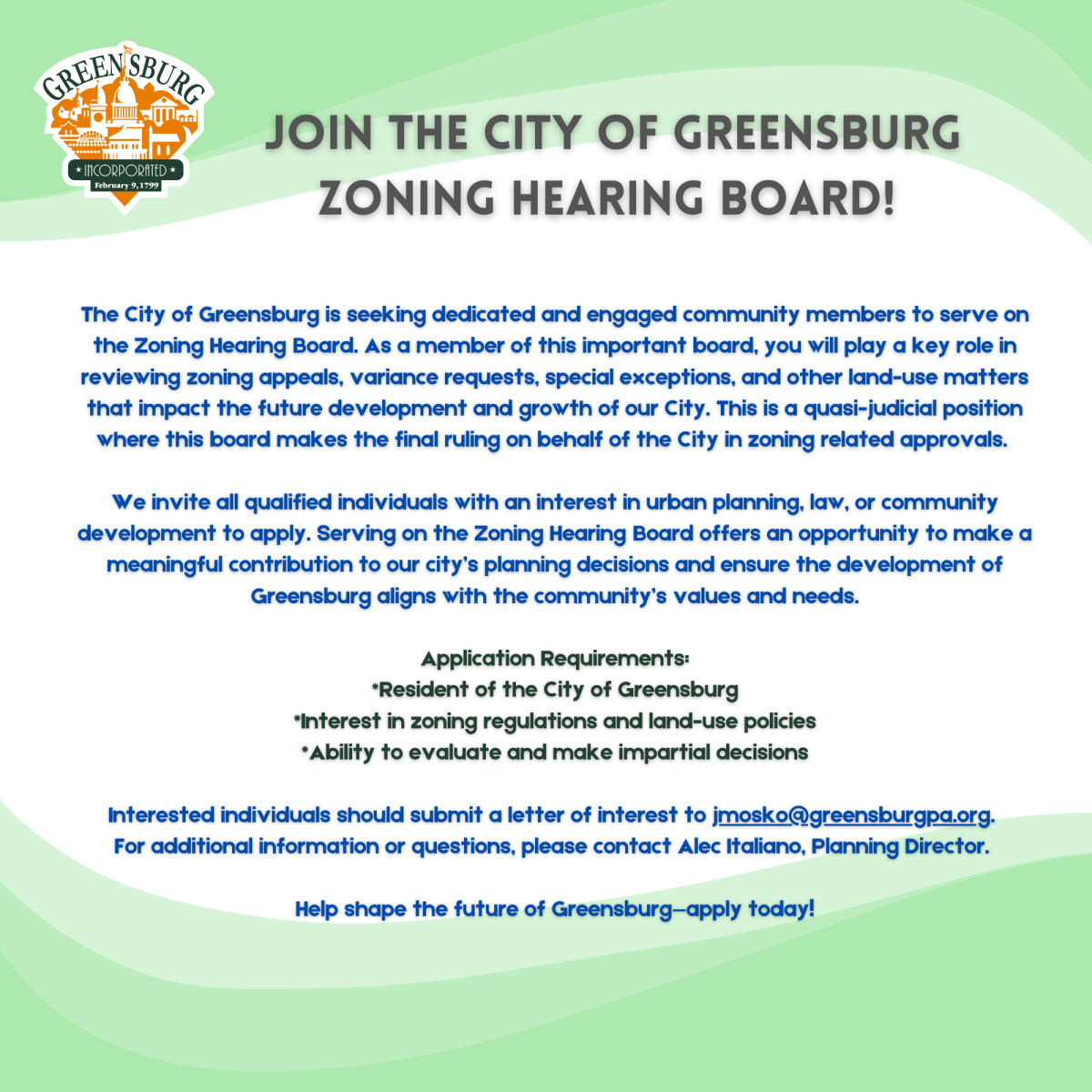 This notification was posted by City of Greensburg. City of Greensburg is solely responsible for this notification and unless specifically indicated, no other community or individual utilizing Savvy Citizen is sponsoring, responsible for, or endorsing this notification.