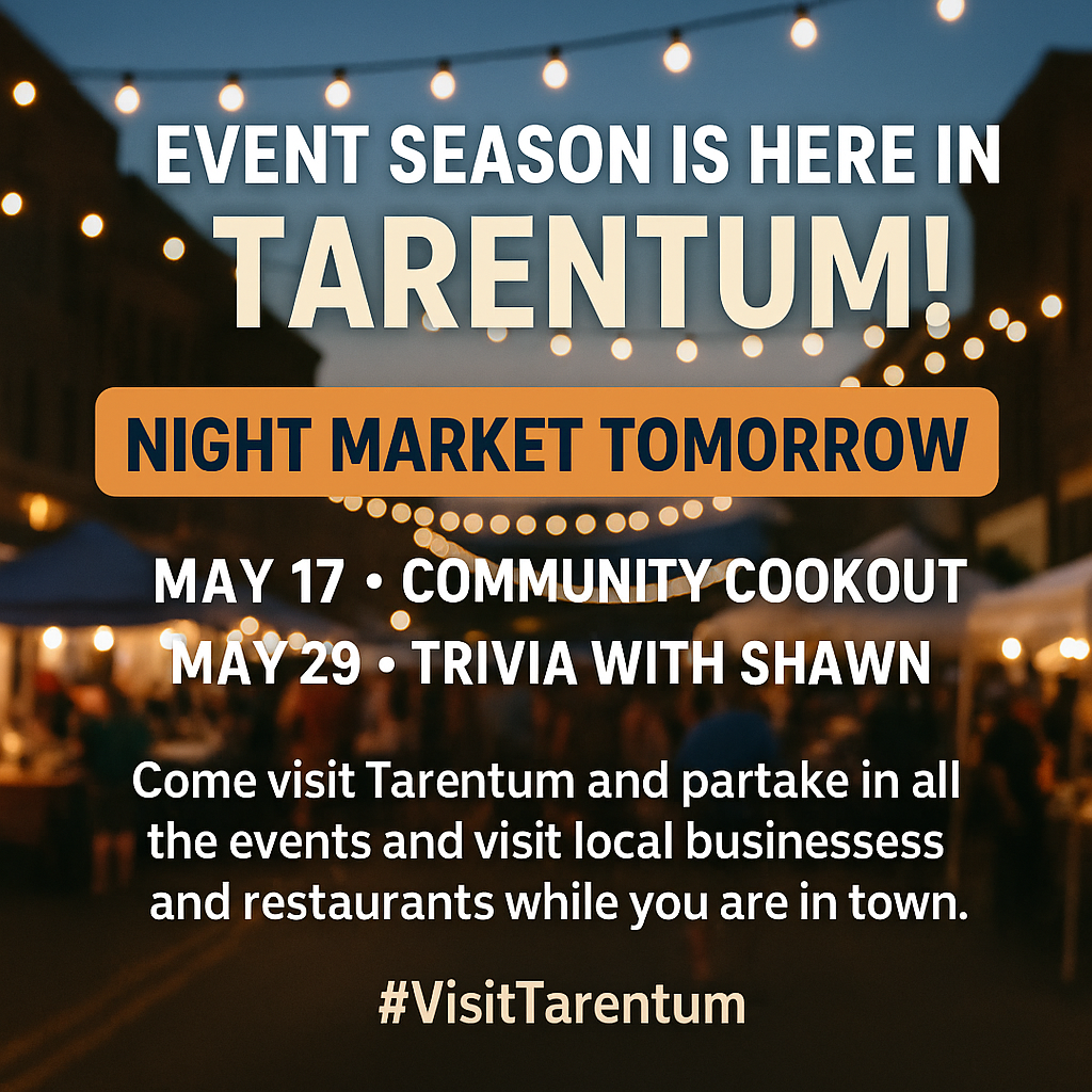 Get ready for a great season of community fun, live entertainment, and local flavor, all kicking off tomorrow with the Tarentum Night Market on 1st Avenue!