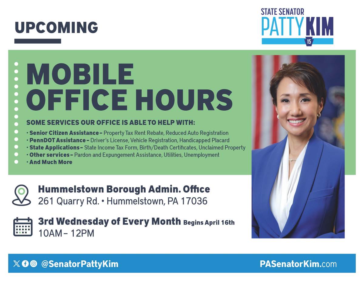 Senator Patty Kim's Staff will be at the Borough office from 10 AM to 12 PM tomorrow, May 21st. Please see the attached flyer for the services they offer with the Mobile Office Hours.
