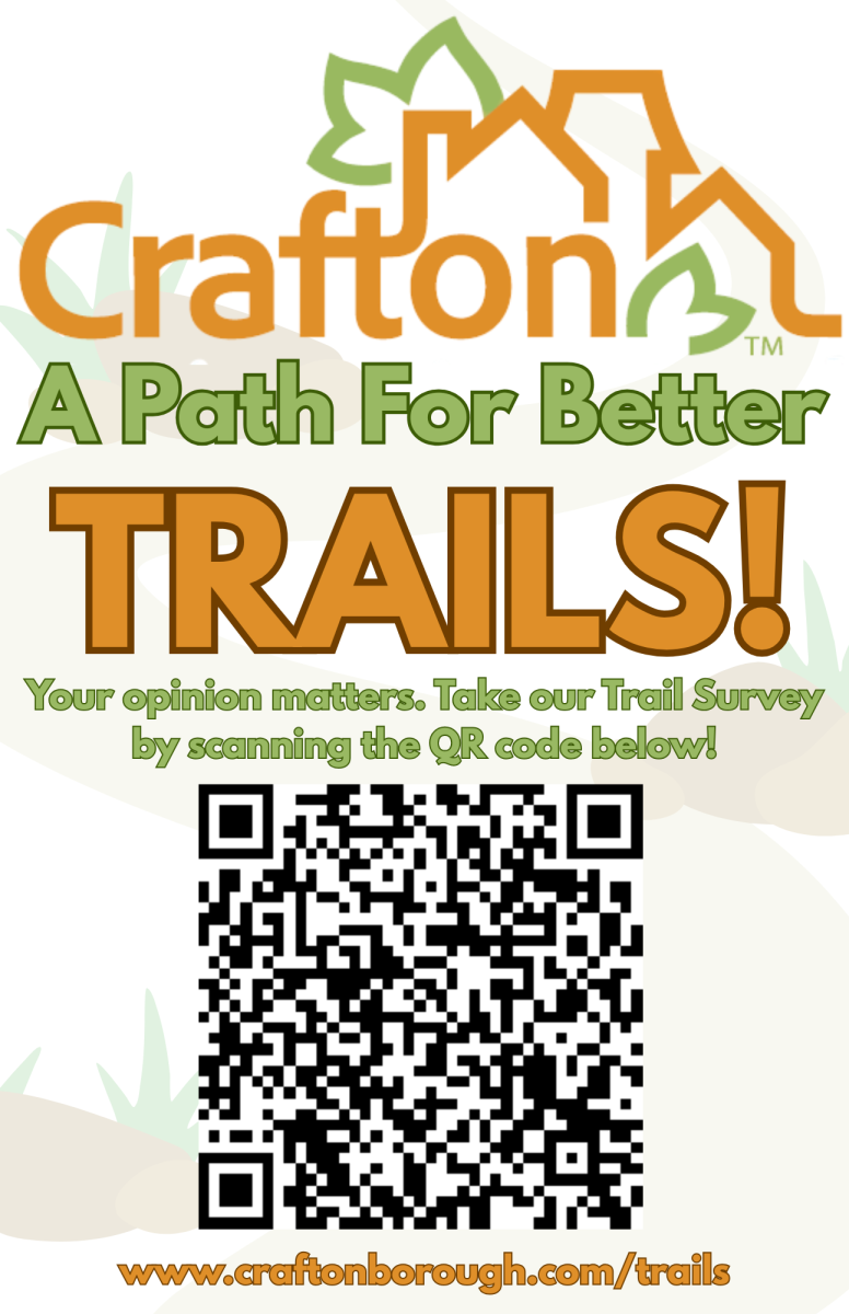 We need YOUR input! Crafton is planning for the future of two walking trails - the Baker's Acres Trail and the Creekside Trail - and we want to hear from you.