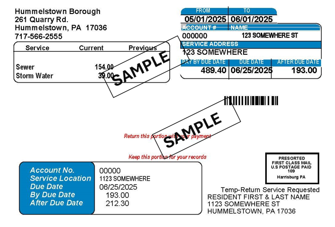 Effective July 1st, 2025, the Borough Bill will be sent as a postcard. The image is an example of what you should expect to arrive in the mail. In addition, the Newsletter will now be received by every household in the borough, as well as the owners!