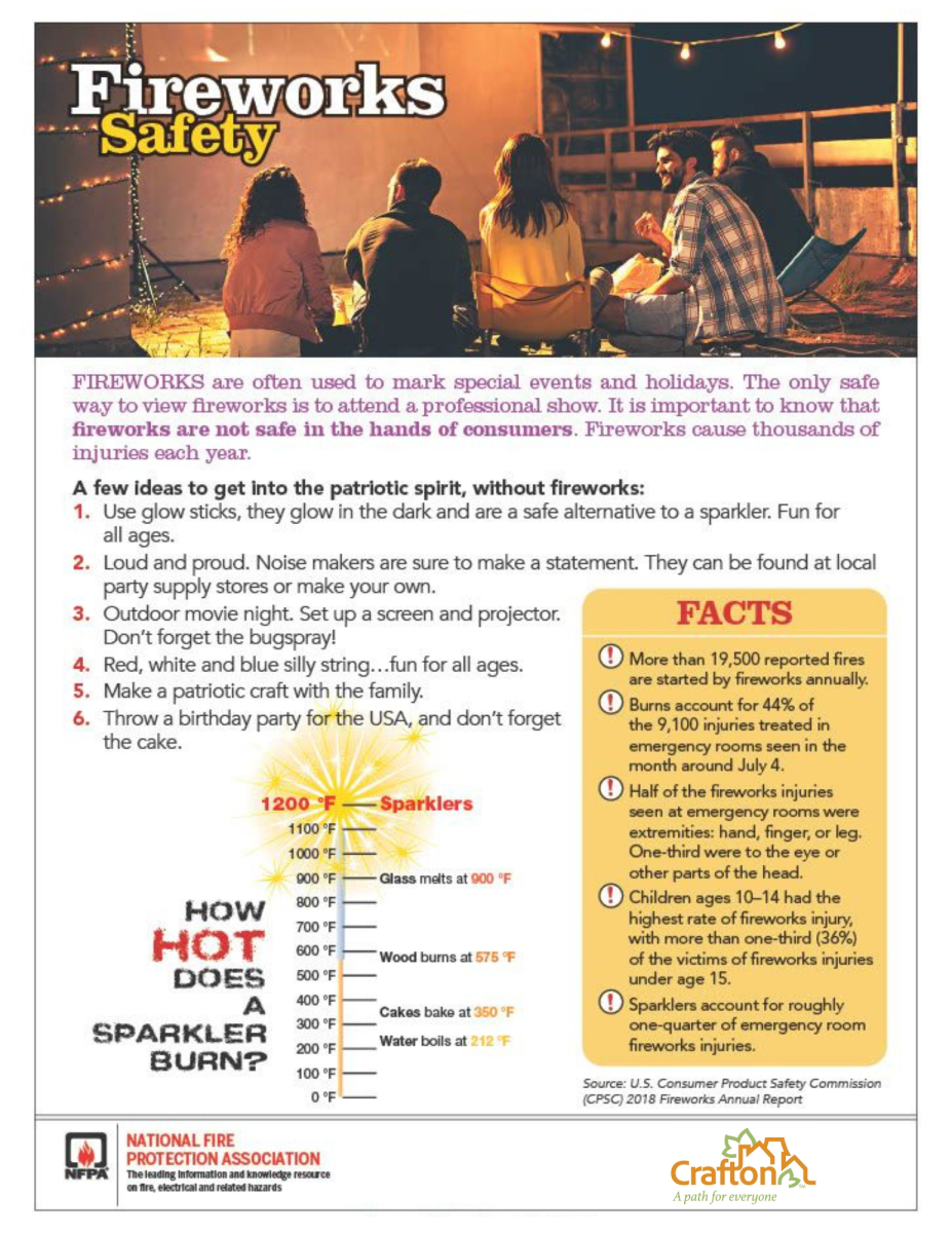 The Crafton Fire Marshall shares this reminder to all residents on Firework Safety!