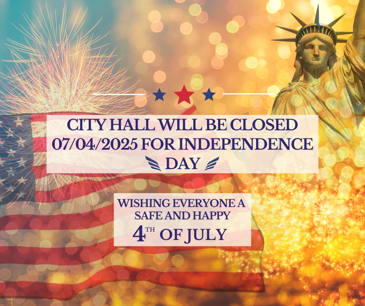City Hall will be closed on Friday, July 4, 2025, in observance of Independence Day.