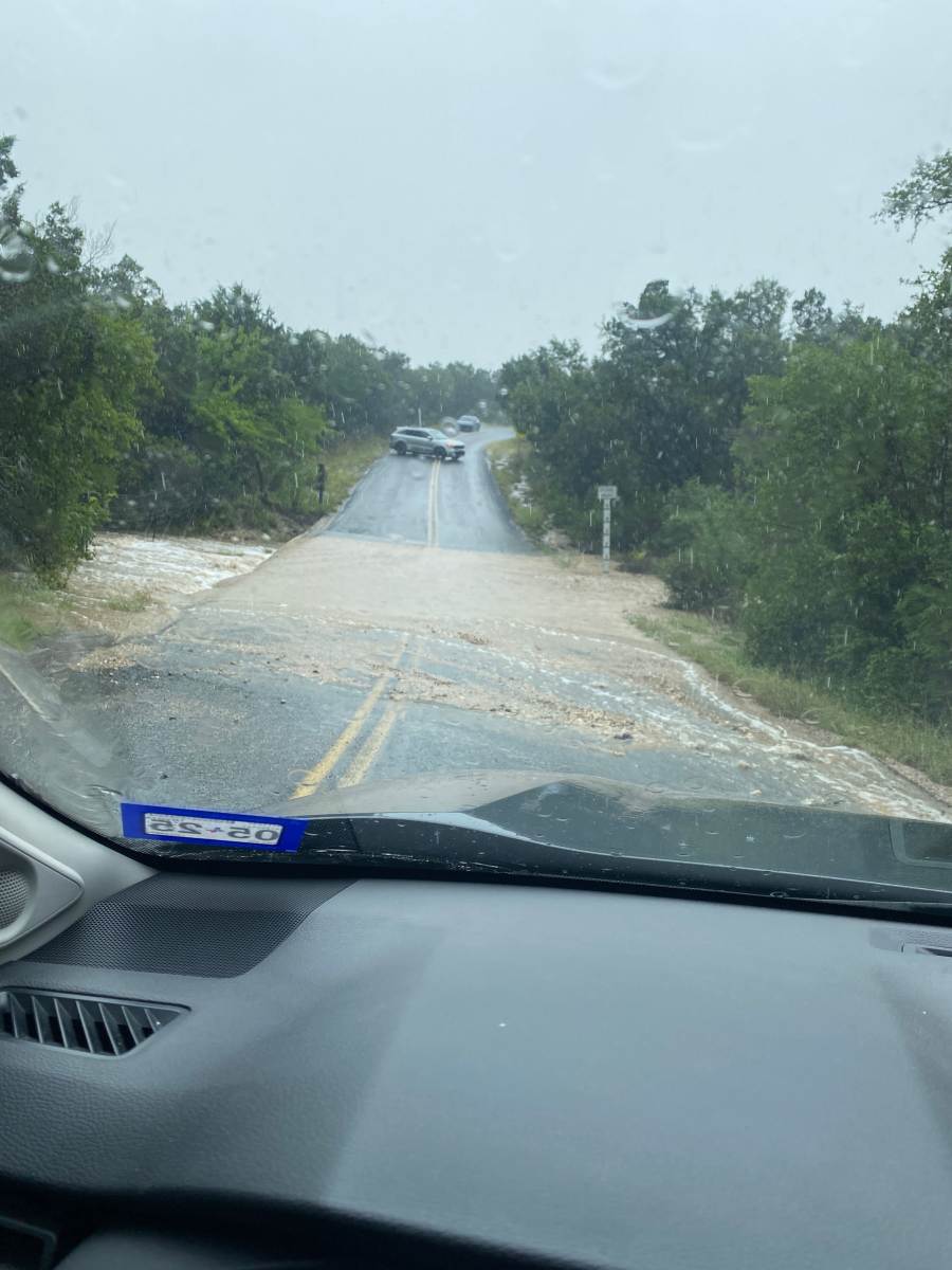 If travel outside the Village of Volente necessary you should avoid Lime Creek Road heading past West Drive and Sandy Creek Marina. While technically not a monitored low water crossing there is moving water over the roadway on Upper Lime Creek.
