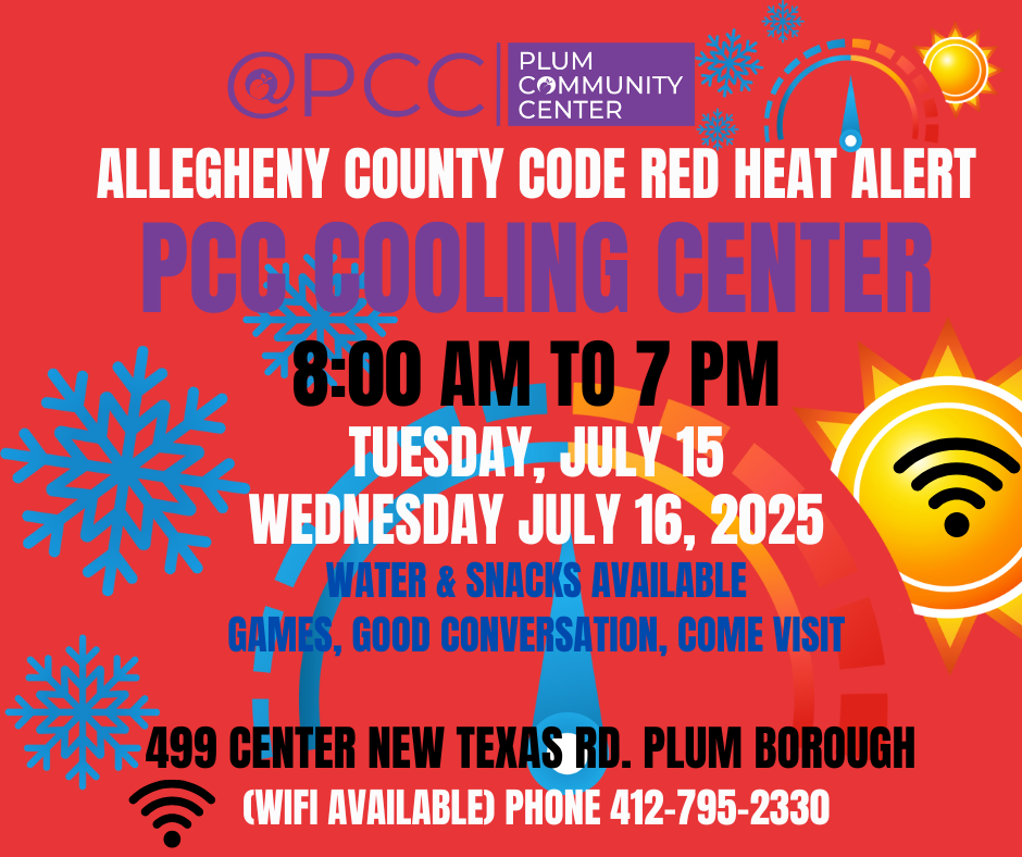 Allegheny County Code Red Heat Alert: Plum Community Center is hosting a cooling place on: