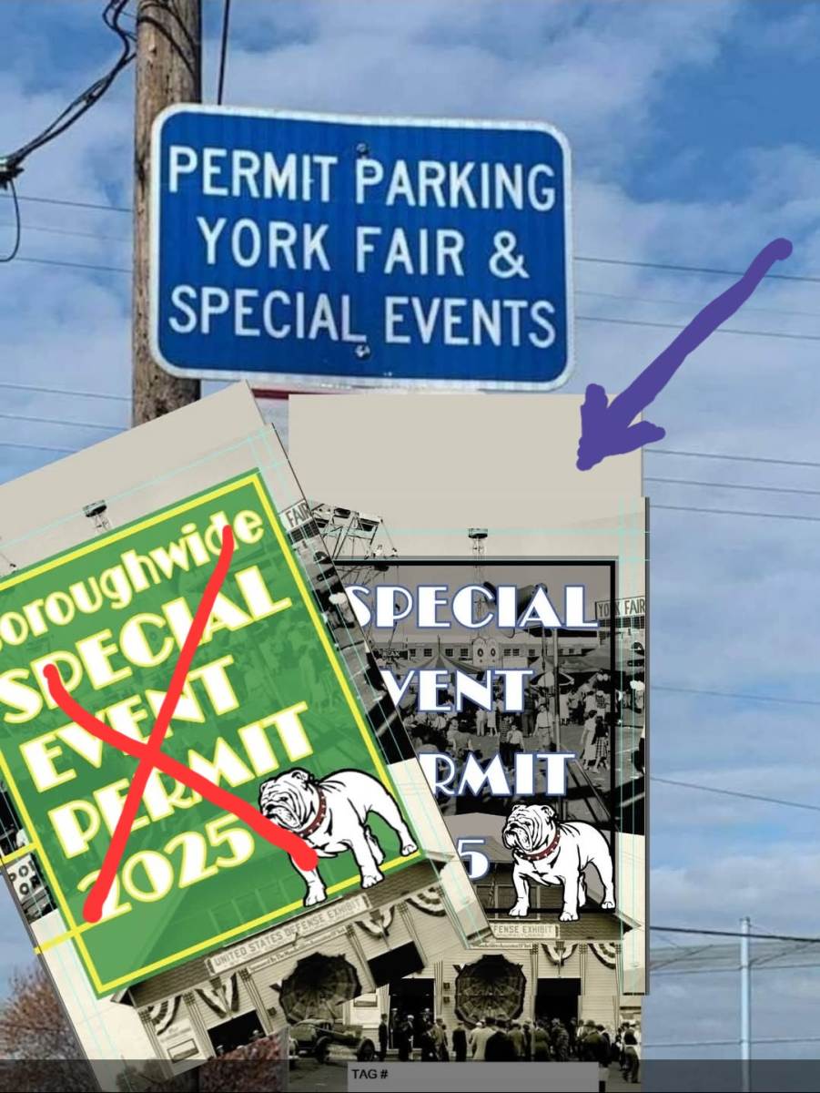 Residents in the York Fair Zone (not Boroughwide special event zone) must put their Grey and Purple parking passes on their vehicle mirror. If you have a Boroughwide pass you are not in the fair parking zone. Your green Boroughwide permit is not permitted to park in the declared York Fair Zone.