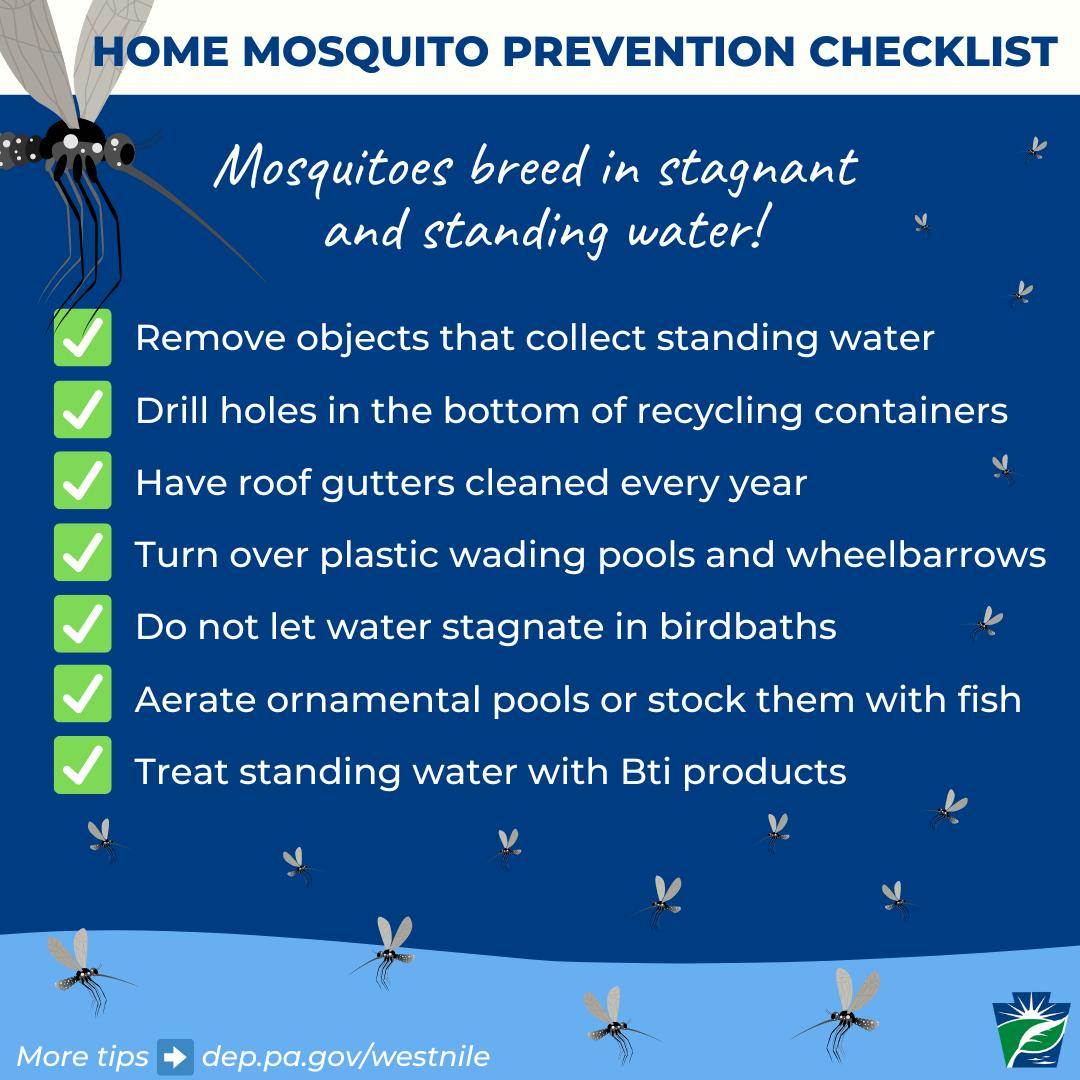 The Berks County Conservation District has notified Douglass Township that a mosquito sample collected in our area has tested positive for West Nile Virus. While the risk of transmission remains LOW, the County's mosquito control team is increasing surveillance efforts in our community as a precaution.
