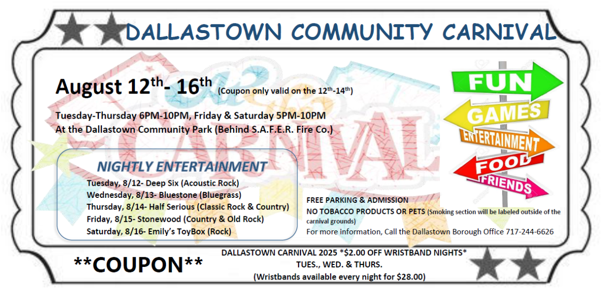 This notification was posted by Dallastown. Dallastown is solely responsible for this notification and unless specifically indicated, no other community or individual utilizing Savvy Citizen is sponsoring, responsible for, or endorsing this notification.