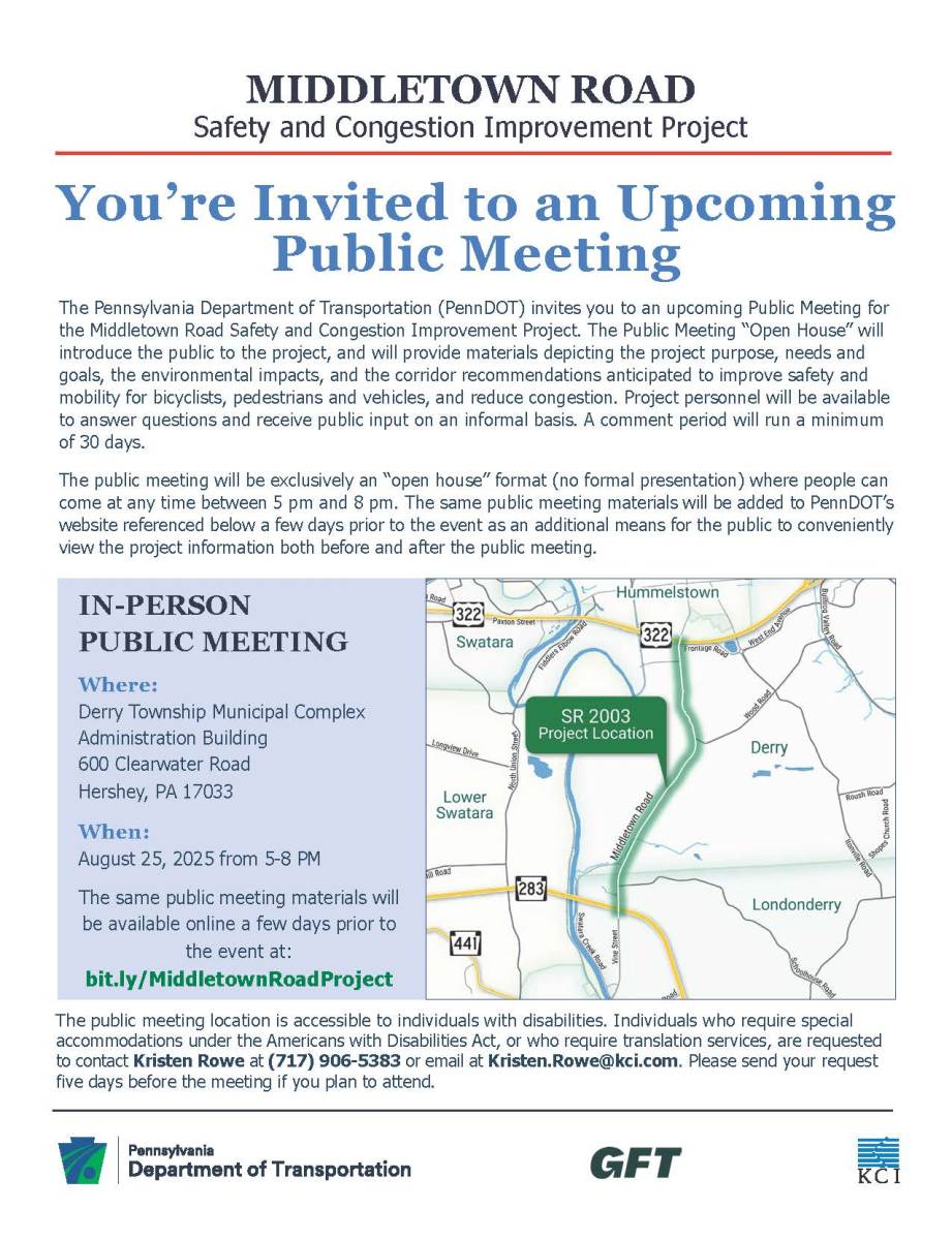 Public Meeting on the Middletown Road Safety and Congestion Improvement Project by The Pennsylvania Department of Transportation (PennDOT).