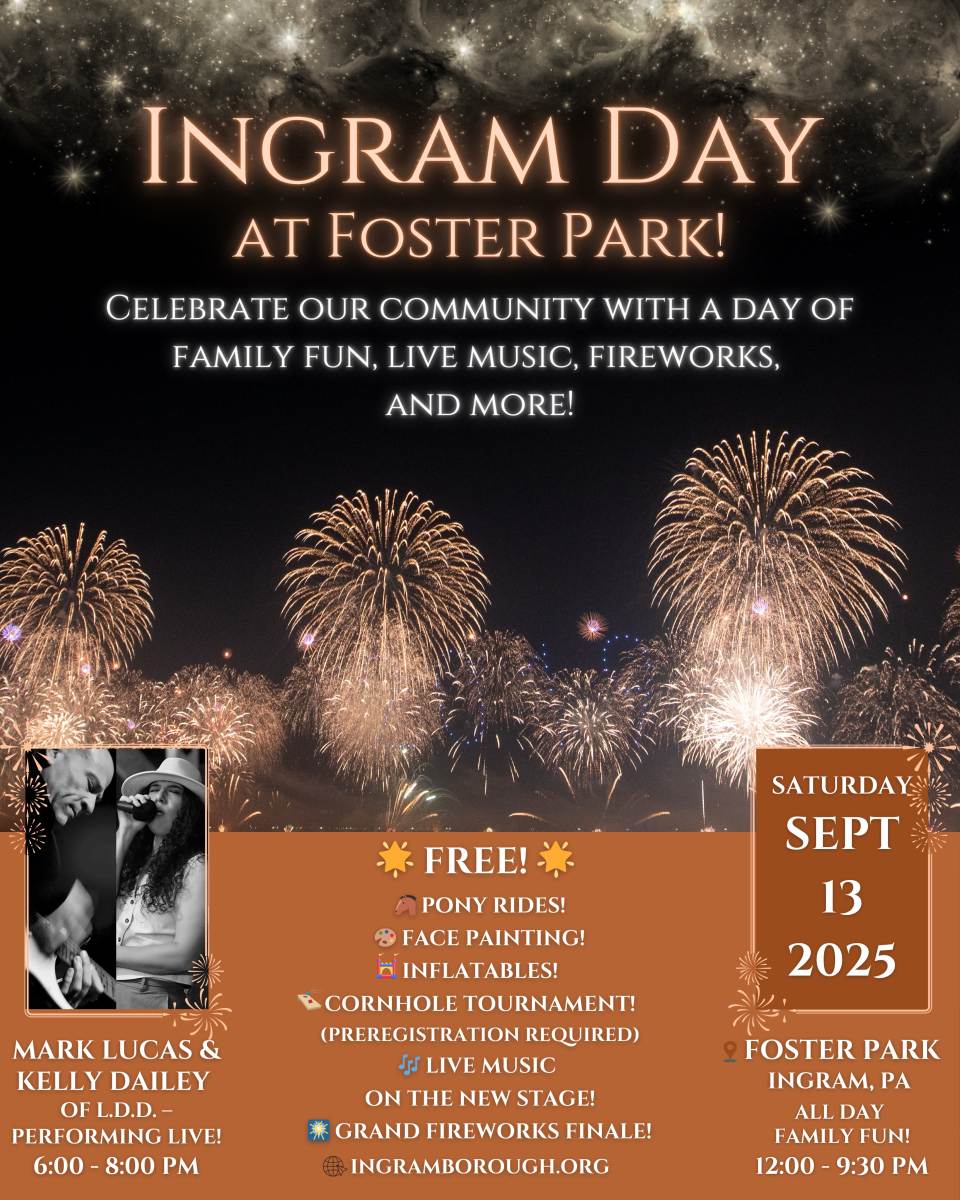 Ingram Borough would like to invite you to join us at Foster Park for Ingram Day on Saturday, September 13!