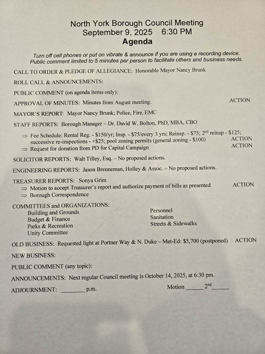Agenda for Council meeting