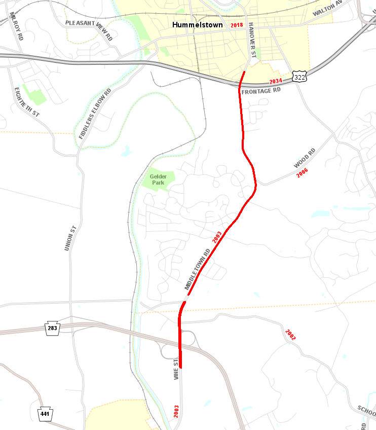 Preliminary engineering and environmental studies for a planned project along Middletown Road(Route 2003) to provide safety and congestion improvement is currently underway. The project area includes a 3-mile corridor along Middletown Road from PA 283 to US 322 in Derry and Londonderry Townships and Humelstown Borough, Dauphin County.