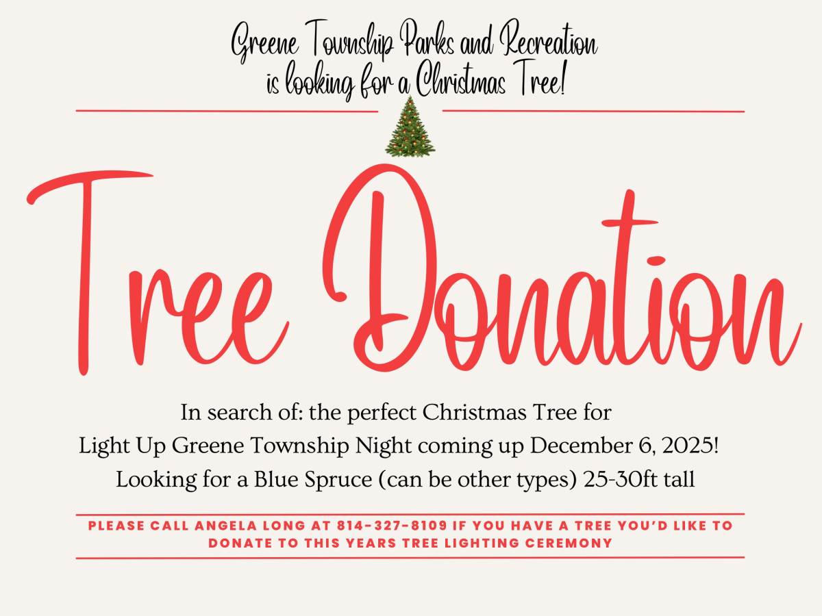If you have a tree you’d like to donate, please contact Angela Long at 814-327-8109.