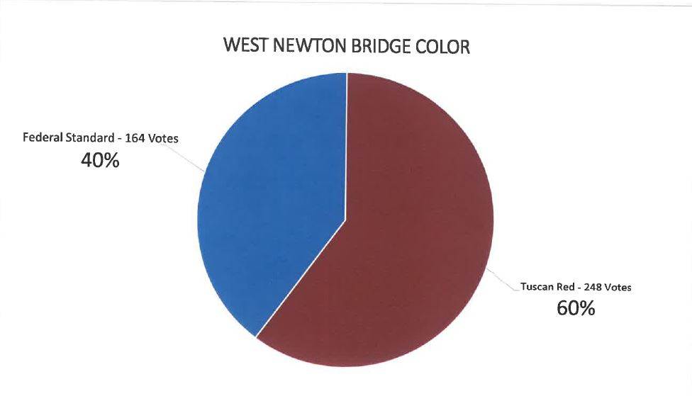 West Newton Borough would like to extend its appreciation to all community members who participated in the recent survey regarding the color selection for the bridge.
