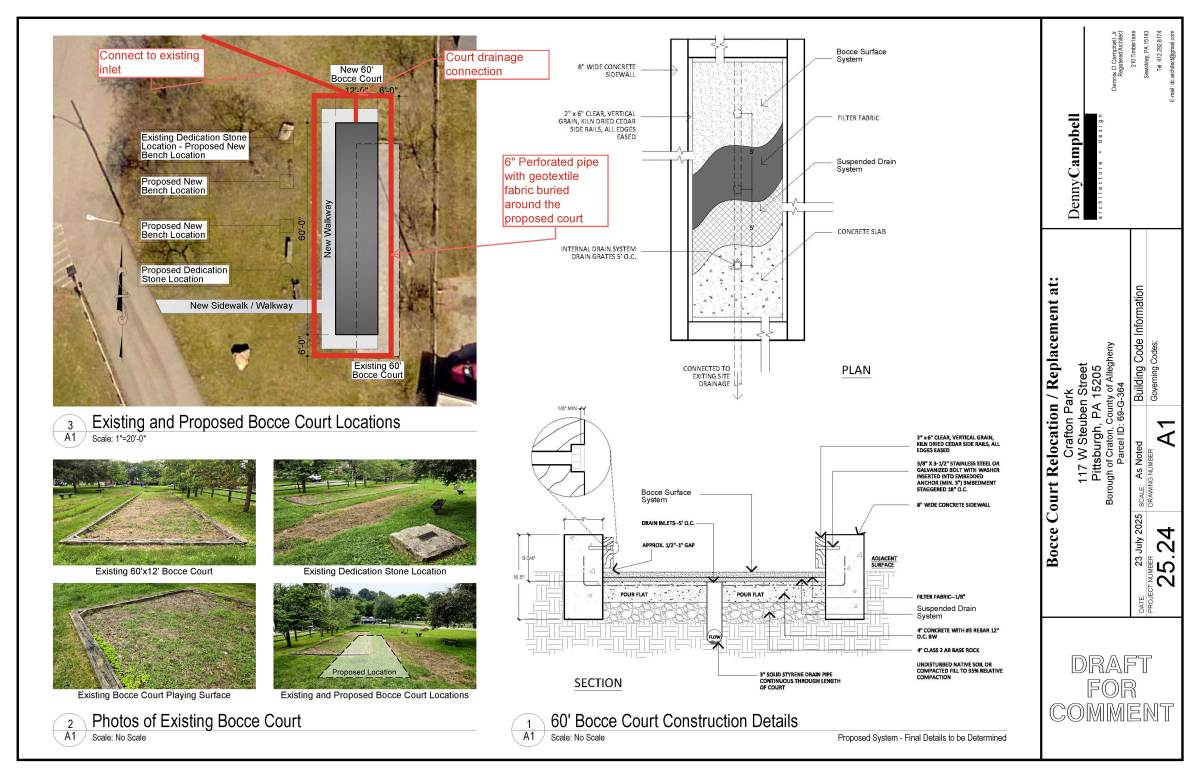 Courtesy of an exceptionally generous anonymous donation, Crafton Park's bocce ball court is getting a makeover. The court itself will be refreshed, a sidewalk from the parking lot to the court will be installed, and drainage improvements will be added to help keep the area from ponding.