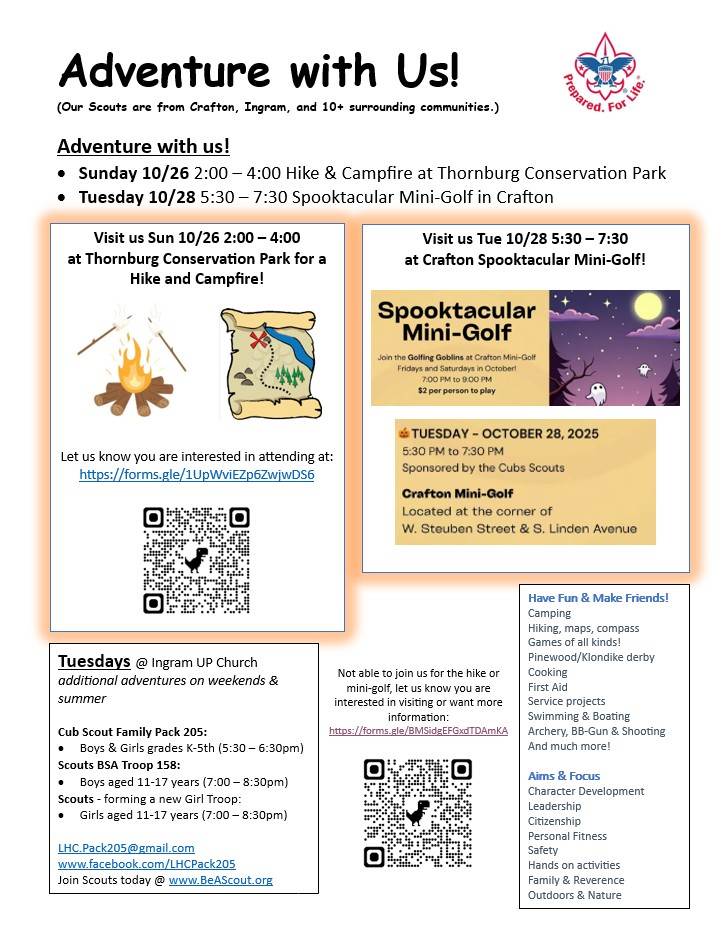 -Boy Scouts of America is a separate organization and is not affiliated with the Borough of Crafton, its Administrators or its Borough Council Members.