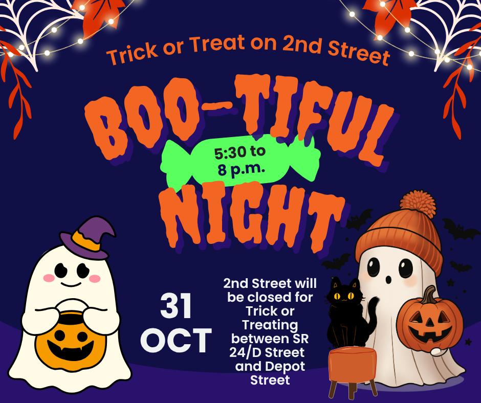 2nd Street will be closed to traffic between SR 24/D Street and Depot Street during the event to ensure a safe and spooky experience for all our little goblins and ghouls.