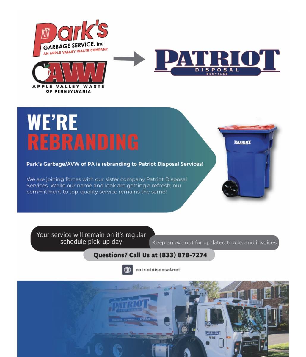 Our current trash service, Park’s Garbage Service Inc is rebranding to the name: Patriot Disposal Services.