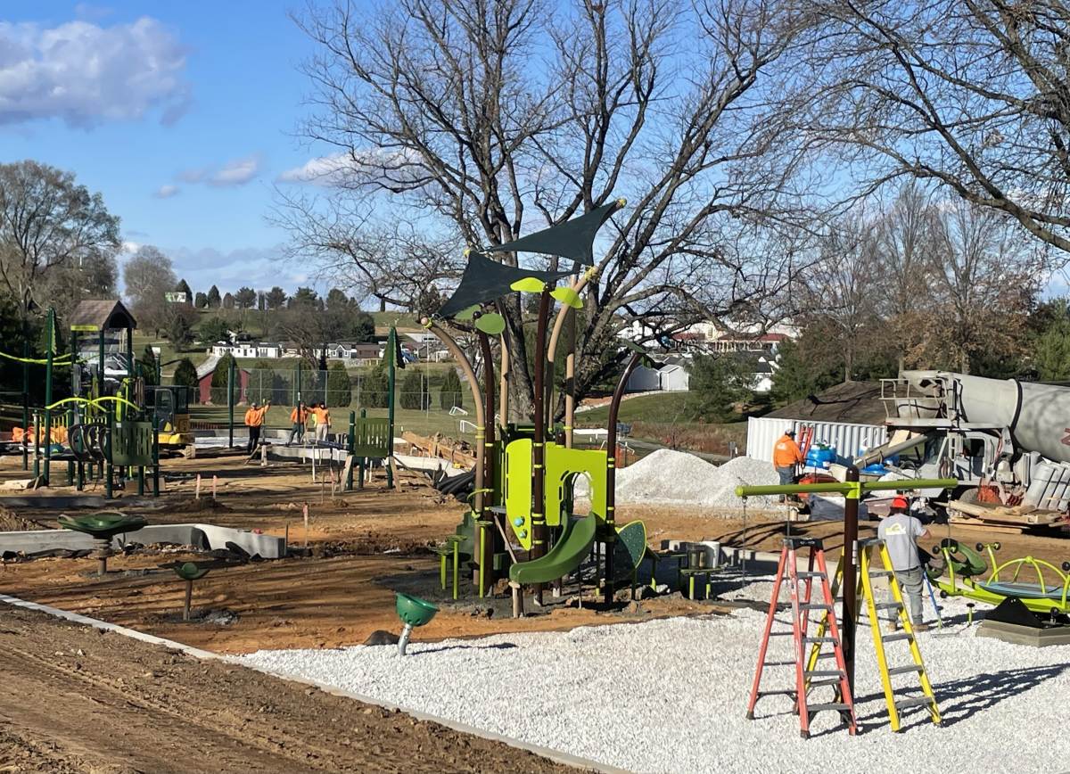 The grass might not be growing…but the new playground sure is!