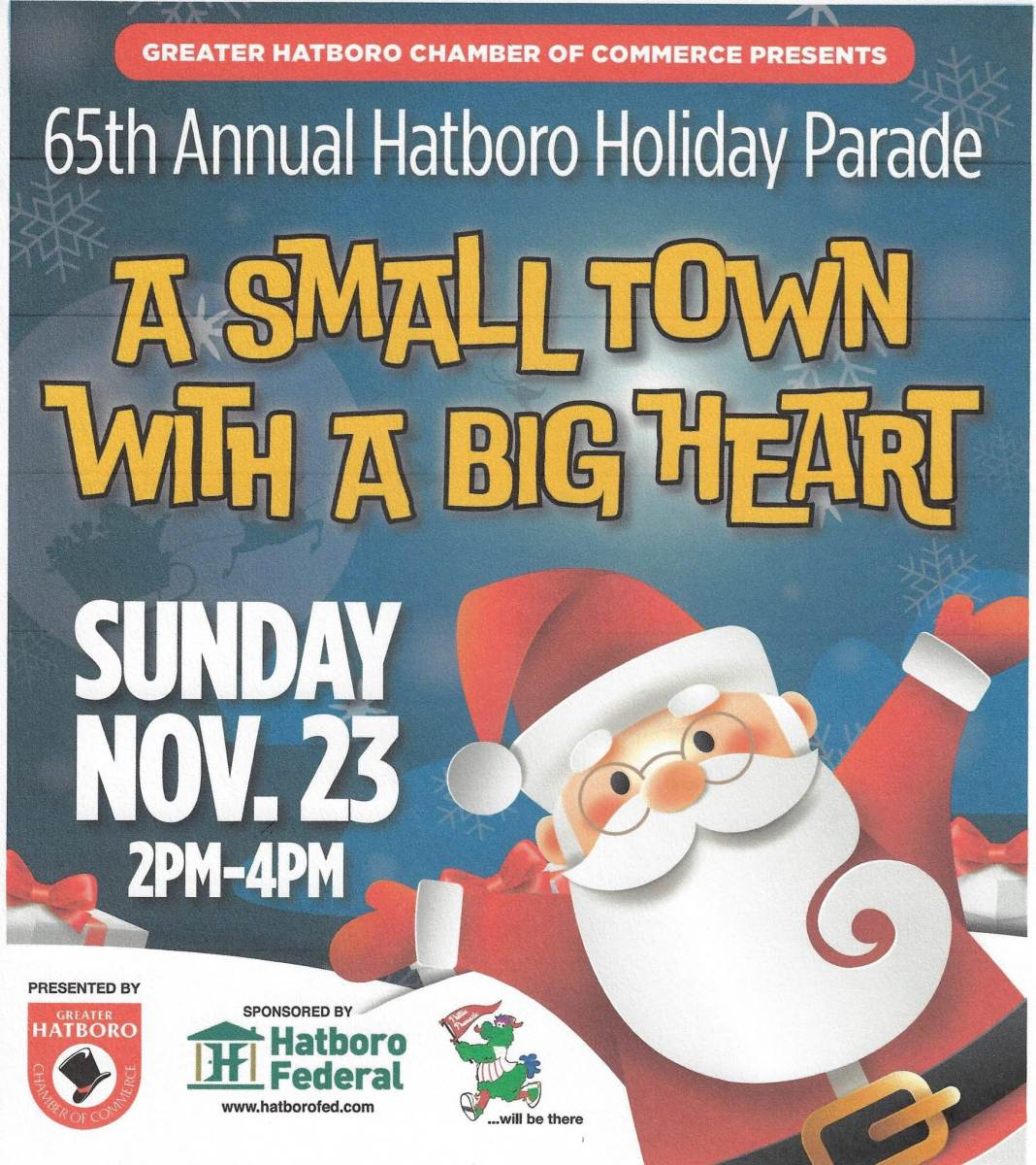 On Sunday November 23, 2025, the Greater Hatboro Chamber of Commerce will be hosting the annual holiday parade from 2:00 PM to 4:00 PM along York Road from Summit Avenue to Newington Drive.