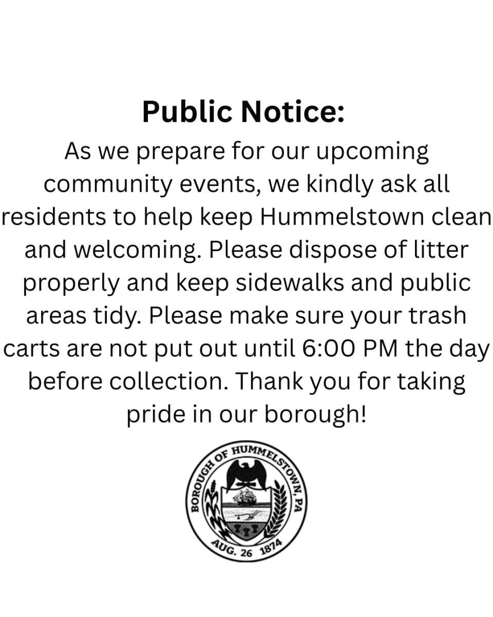 As we get ready for community events, let’s all do our part to keep Hummelstown clean and welcoming. Please toss trash where it belongs and wait until after 6 PM the night before pickup to place carts out. We appreciate your help! 😊