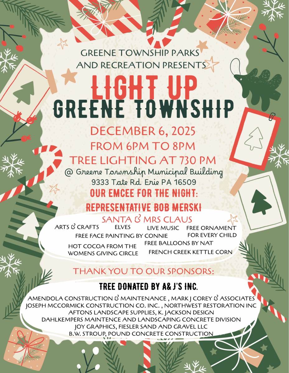 We hope that you will join us at our first ever Light Up Greene Township event. Saturday, Dec. 6 from 6pm to 8pm!