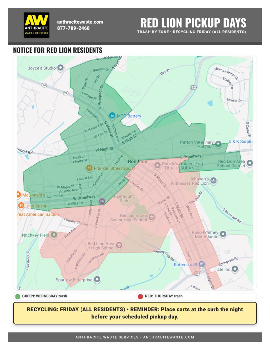 Anthracite Waste Services will begin trash and recycling collection on January 1, 2026. See attached route map for pick-up schedule.