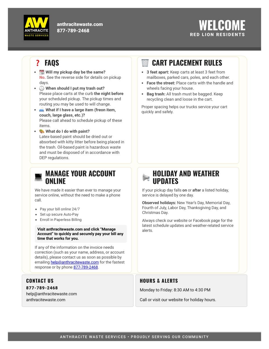 Thank you for your patience and cooperation as we transition to Anthracite Waste Services.