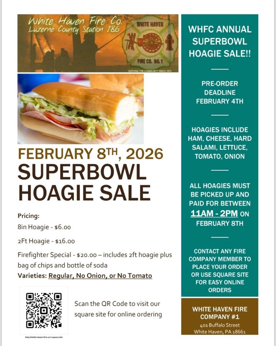 White Haven Fire Company #1 Superbowl Hoagie Sale