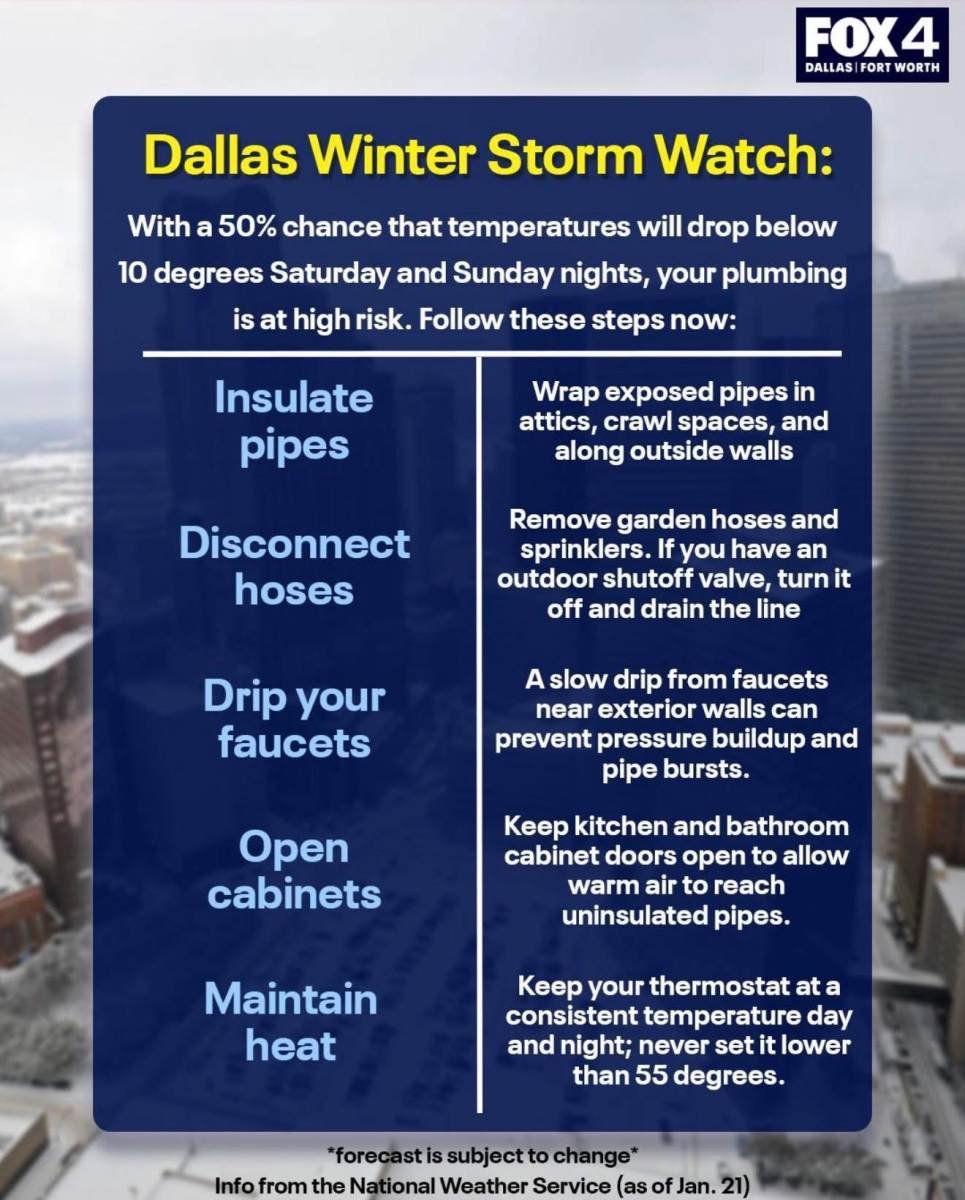 Let faucets drip from the cold and hot taps or run water through your indoor faucets – hot and cold -- before you go to sleep. Follow your local government’s instructions, which may limit water usage.