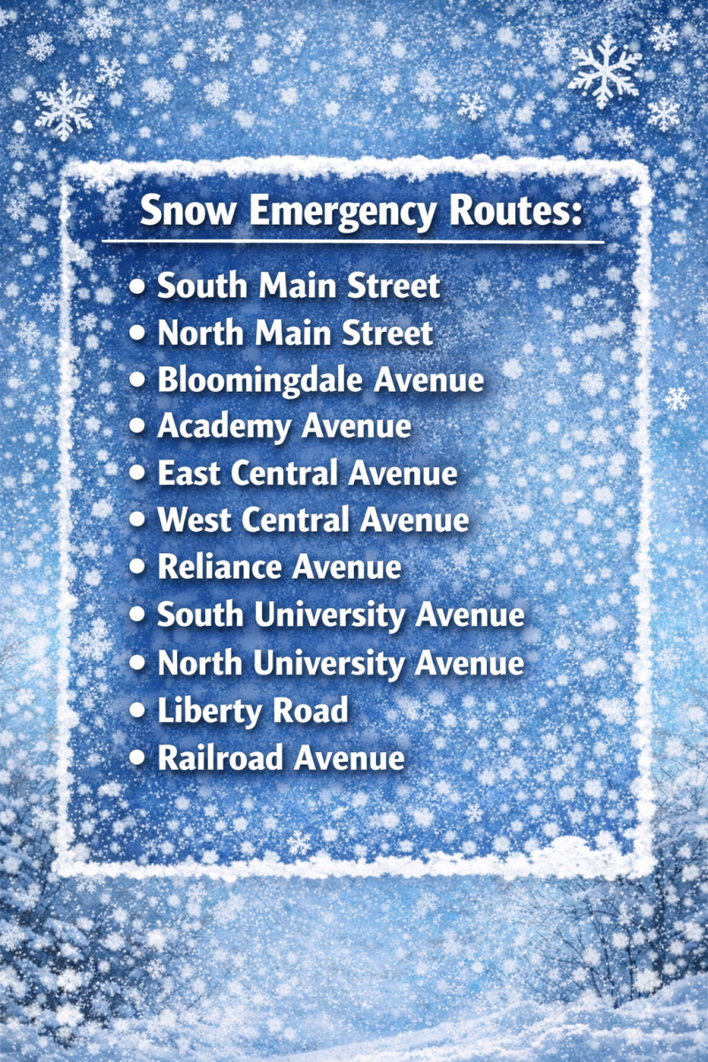 During this time, parking is prohibited on designated Snow Emergency Routes, including certain main streets throughout town.