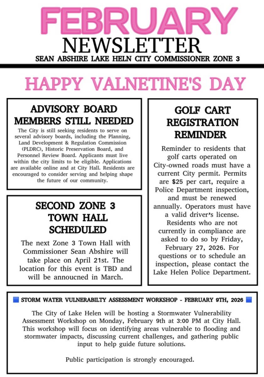 This notification was posted by City of Lake Helen. City of Lake Helen is solely responsible for this notification and unless specifically indicated, no other community or individual utilizing Savvy Citizen is sponsoring, responsible for, or endorsing this notification.