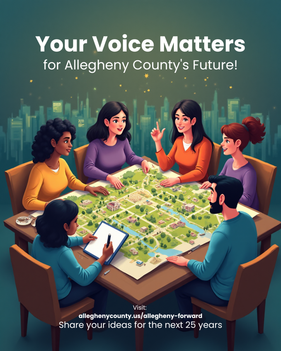 Allegheny County is developing "Allegheny Forward," a comprehensive plan to guide growth and investments over the next 25 years. This plan will shape land use, infrastructure, housing, economic development, and more across all our communities.