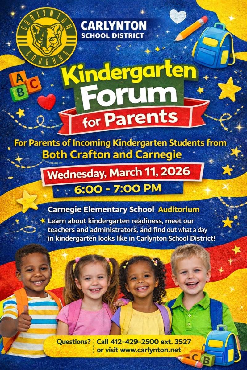 Is your child starting kindergarten this fall? Join Carlynton School District for a special Kindergarten Forum for Parents to learn everything you need to know!