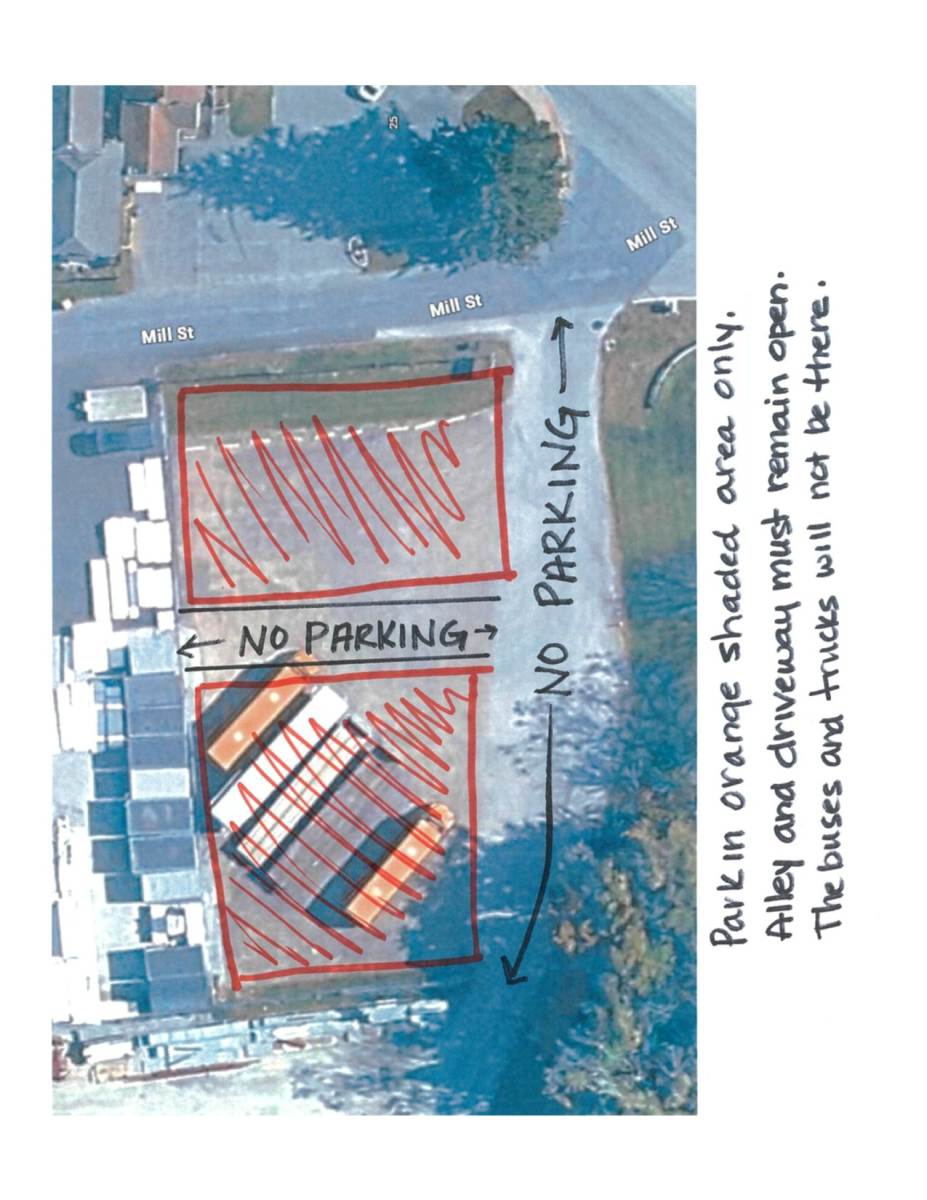 Temporary limited parking is available in the Honeywell Fabrication lot off Mill Street. Parking is permitted only in the orange-shaded areas shown on the attached diagram. The alley and driveway need to remain open. Please Park in a manner that maximizes the number of available spaces. This is private property, and vehicles must be removed from this area as soon as the snow event has ended and your regular parking area is accessible. Any vehicle not removed in a timely manner will be towed at the owner’s expense.