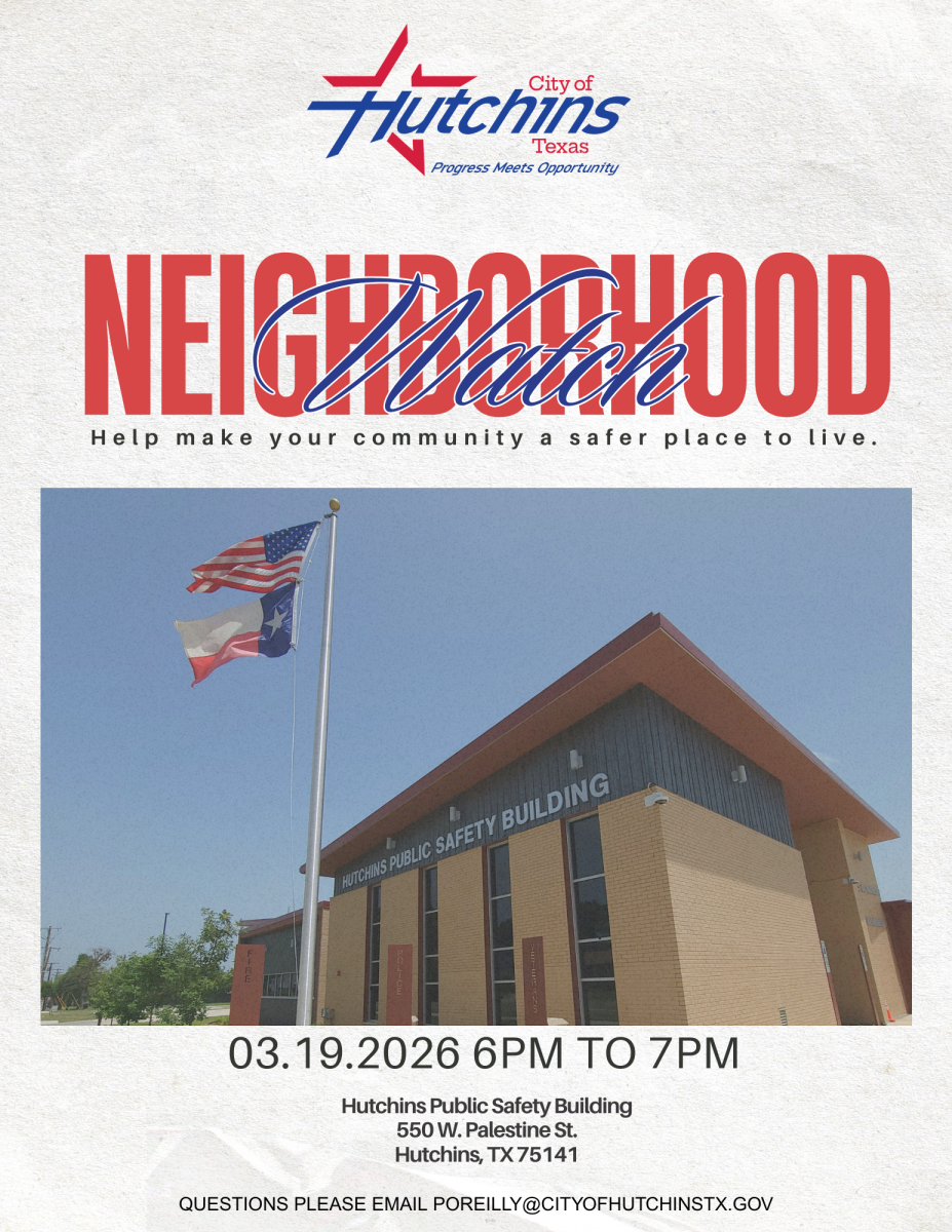 This notification was posted by City of Hutchins. City of Hutchins is solely responsible for this notification and unless specifically indicated, no other community or individual utilizing Savvy Citizen is sponsoring, responsible for, or endorsing this notification.