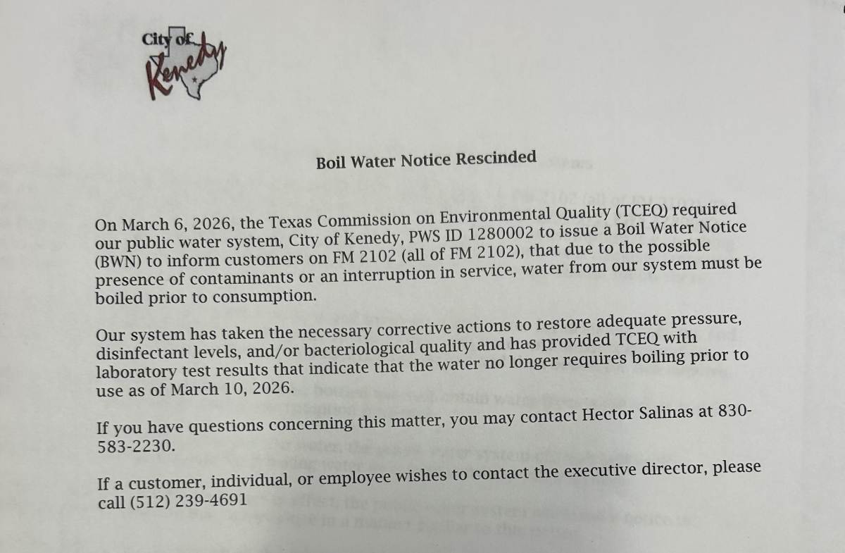 The Boil Water Notice issued on March 6, 2026 to inform customers on FM 2102 (all of FM 2102) has been rescinded.