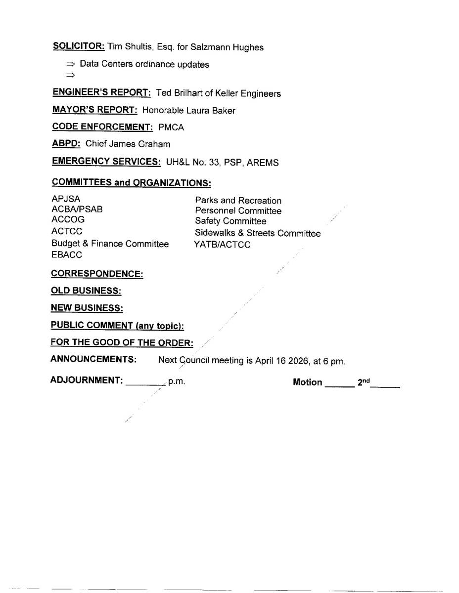 March 19th 2026 Council Meeting Agenda