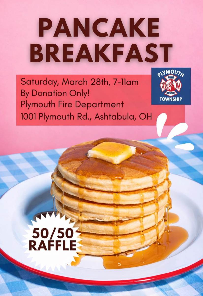The event is from 7am - 11am at the Plymouth Township Fire Hall, at 1001 Plymouth Brick Road W. Ashtabula, Ohio 44004.