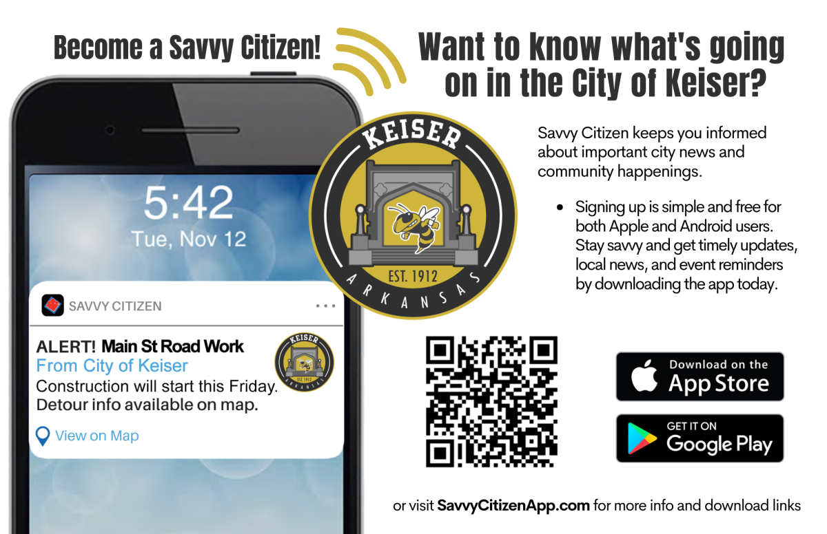 This notification was posted by City of Keiser. City of Keiser is solely responsible for this notification and unless specifically indicated, no other community or individual utilizing Savvy Citizen is sponsoring, responsible for, or endorsing this notification.