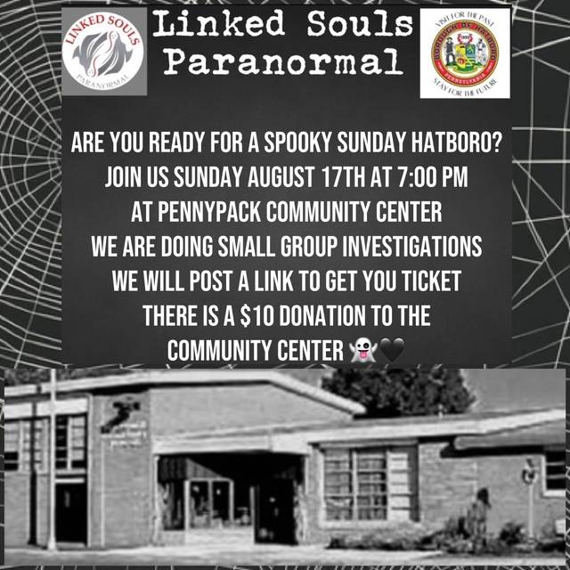 Join Linked Souls Paranormal, Sunday, August 17 at 7pm at the Pennypack Community Center. They will be holding their monthly small group investigation. To reserve a ticket please visit the following link for a $10 donation to the Pennypack Community Center.