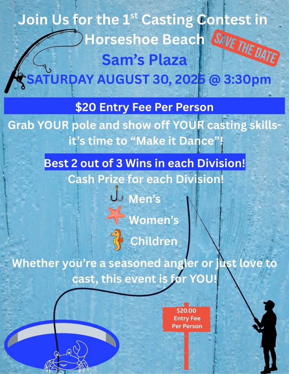 Starting Friday August 29, 2025 - Saturday August 30, 2025 there will be several things happening in Horseshoe Beach.